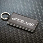The key holder is made of synthetic leather, which is resistant to scratches and dirt, and is on the soft side.
