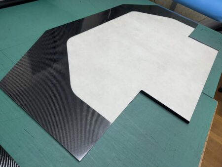上面の見えるところは高品質な3K綾織の東レ CO6347BL カーボンを使用し、あまり見えない&擦れてしまうこともある下面は黒ゲルコートとすることにより見た目とコストの両立を図りました。