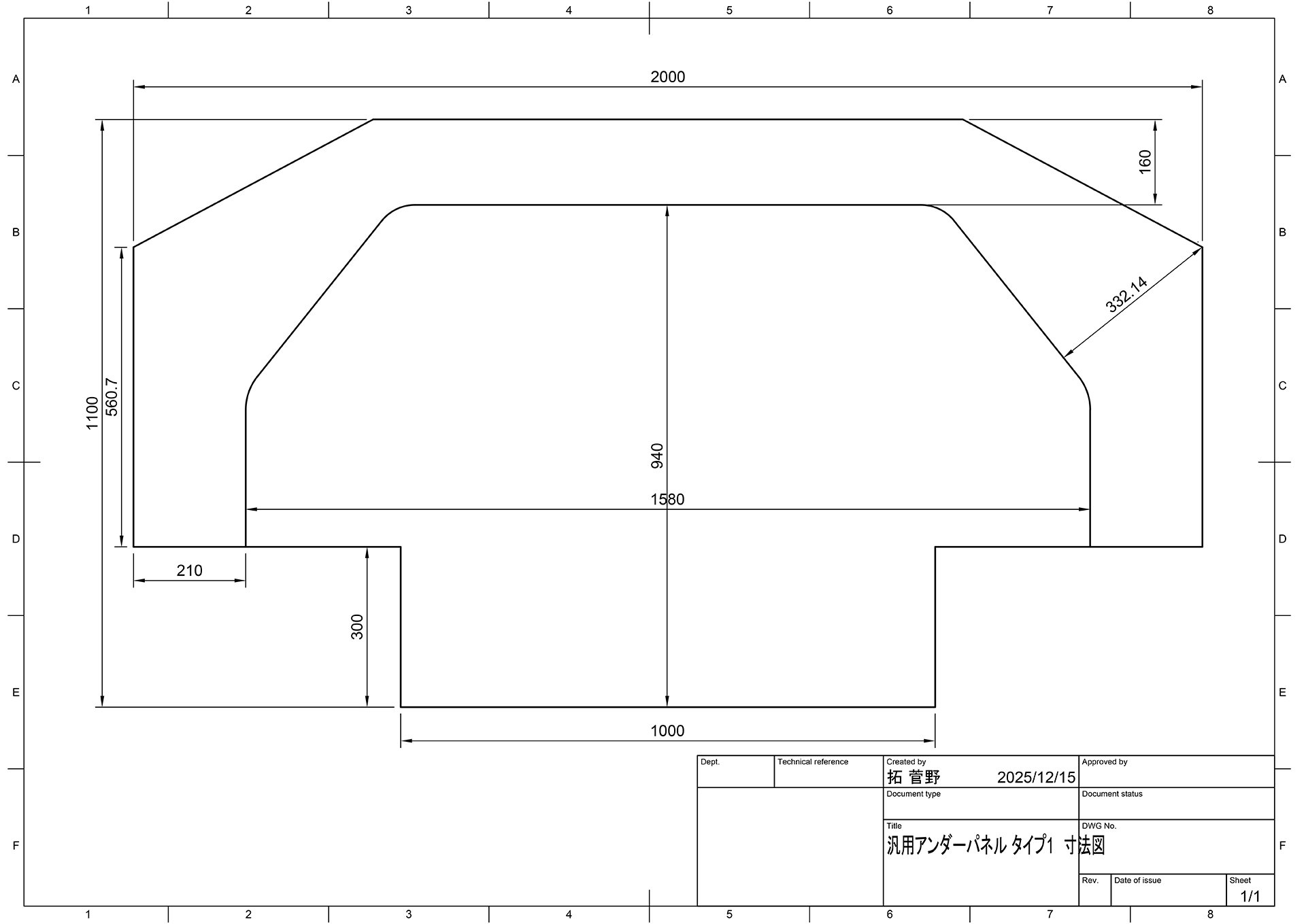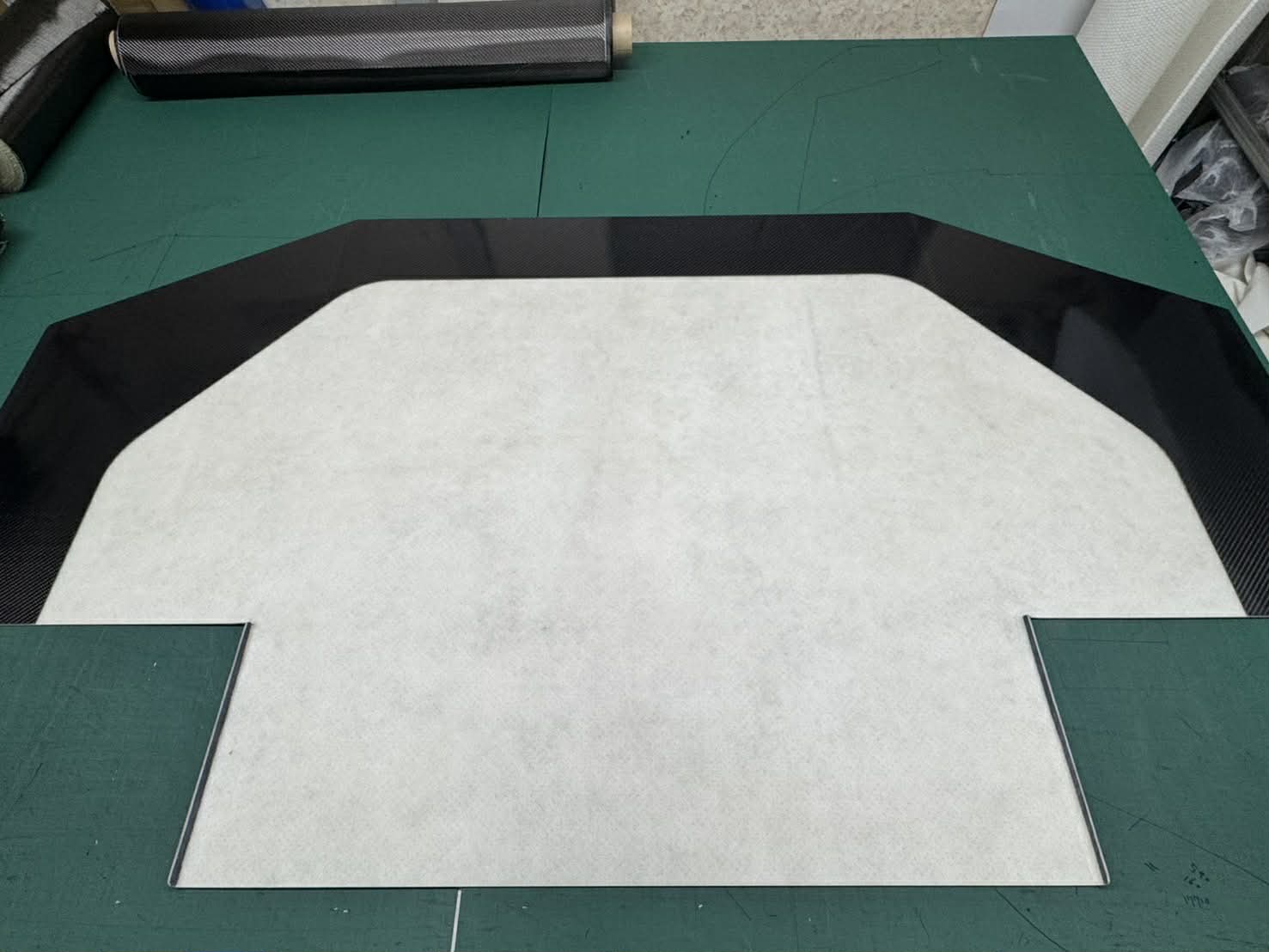 このアンダーパネルは2000×1100 t=7mmの特大サイズですが、ウェットカーボン製とする事により、加工性を高め愛車に合わせやすい形状にリメイクすることを可能にしました。 上面のカーボンは、サイドが210mm、前方は160mmとしております。切断して1800×900などでの使用も可能です。